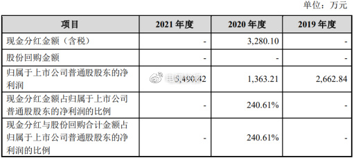 数据显示,2019年、2020年和2021年,北玻股份分别实现上市公司普通股股东净利润2662.84万元、1363.21万元和5490.42万元。其中,2020年该公司实施了每10股派发现金股利人民币0.35元(含税)的方案,共分红3280.10万元。其他年份,该公司并未进行任何形式的分红。