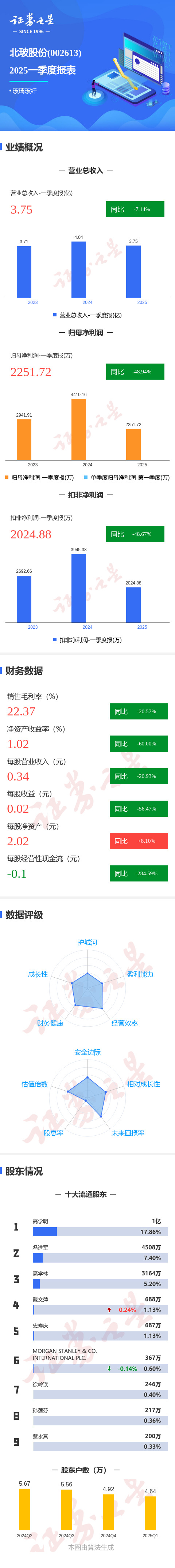 图解北玻股份一季报:第一季度单季净利润同比减48.94%