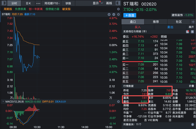 个股方面,ST瑞和(002620)盘中触及跌停,上演“天地板”,成交额接近2亿元。