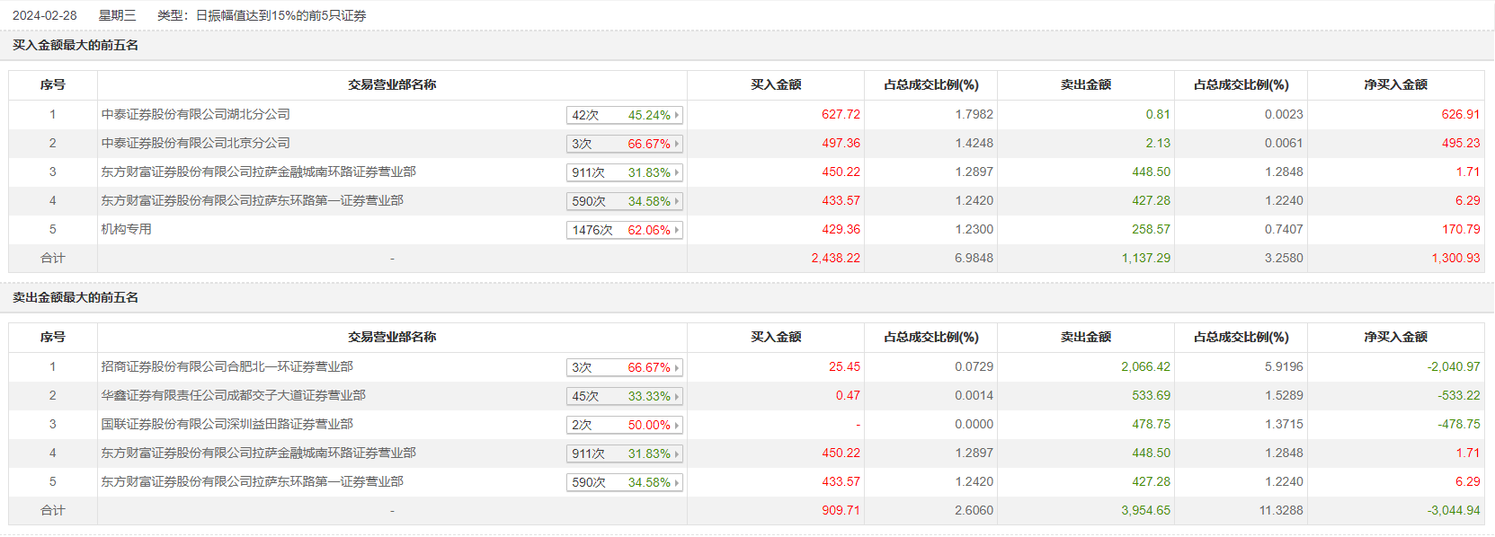 具体来看,机构买入429.36万元,卖出258.57万元,合计净买入170.79万元。此外,招商证券合肥北一环证券营业部、华鑫证券成都交子大道证券营业部分别卖出2066.42万元、533.69万元;中泰证券湖北分公司、中泰证券北京分公司分别买入627.72万元、497.36万元。