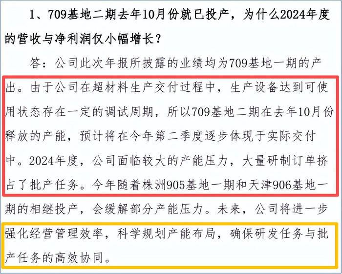 此外我们注意到,公司在上述回复中还提到:“未来公司将科学规划产能布局,确保研发任务与批产任务的高效协同。”