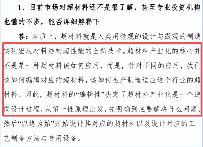 首先与其他领域不同,超材料是具有“编辑性”的,需要明确材料的应用场景,再去设计超材料结构、对应工艺以及专用设备,与其他材料生产过程的设计思路相比是逆向的。