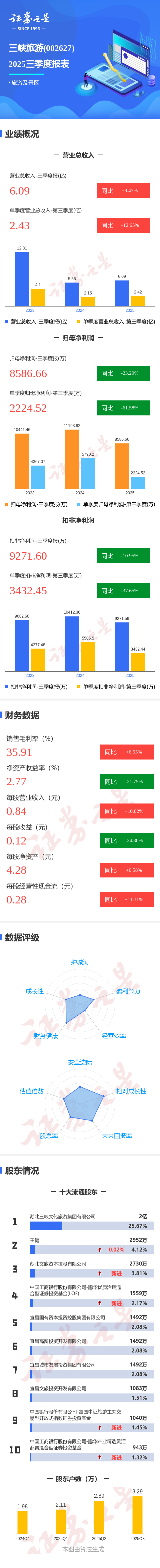 图解三峡旅游三季报:第三季度单季净利润同比下降61.58%