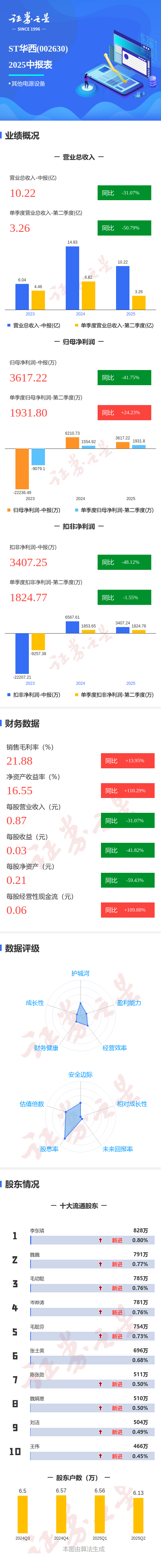 图解ST华西中报:第二季度单季净利润同比增长24.24%