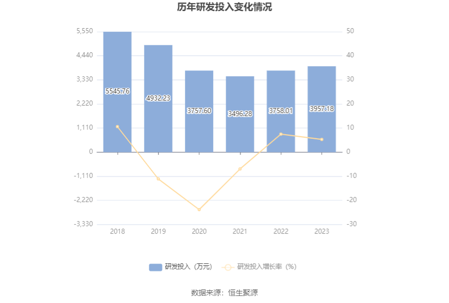 2023年全年,公司研发投入金额为3957.18万元,同比增长5.30%;研发投入占营业收入比例为2.05%,相比上年同期上升0.15个百分点。此外,公司全年研发投入资本化率为0。