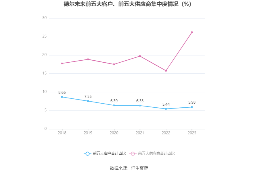 报告期内,公司前五大客户合计销售金额1.15亿元,占总销售金额比例为5.93%,公司前五名供应商合计采购金额2.12亿元,占年度采购总额比例为26.18%。