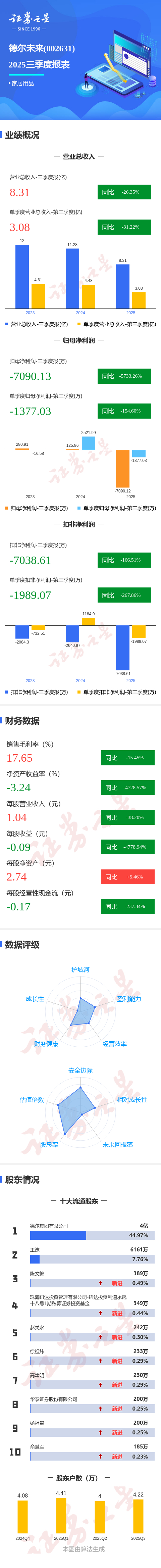 图解德尔未来三季报:第三季度单季净利润同比下降154.60%