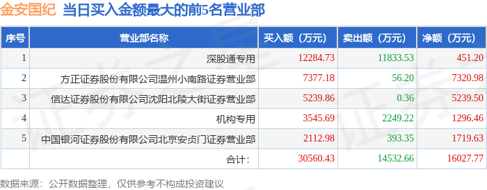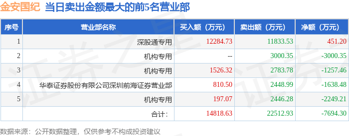 11月11日金安国纪(002636)龙虎榜数据:机构净卖出5210.55万元,北向资金净买入451.2万元