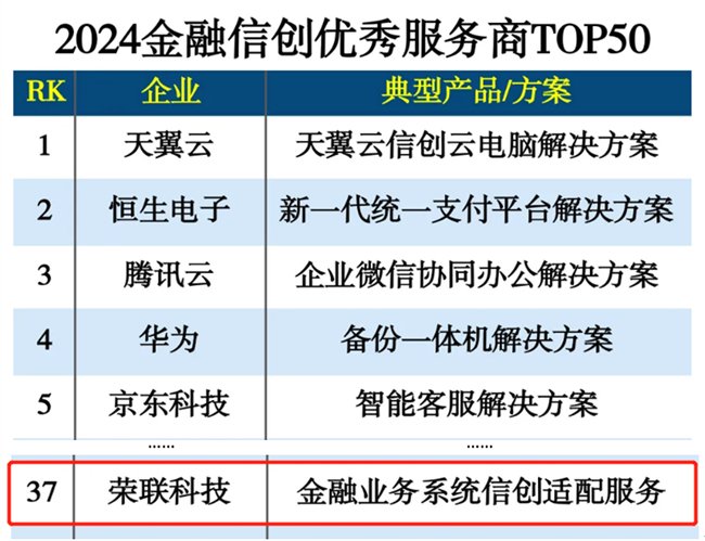 荣联科技集团荣登“2024金融信创优秀服务商TOP50”