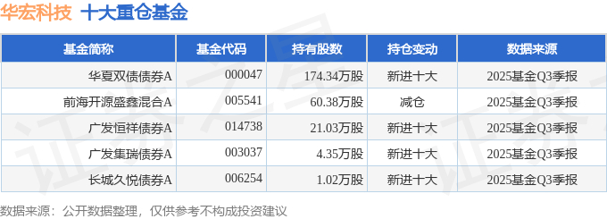 持有华宏科技最多的基金为华夏双债债券A,目前规模为19.09亿元,最新净值2.0807(10月30日),较上一交易日下跌0.84%,近一年上涨21.94%。该基金现任基金经理为柳万军。
