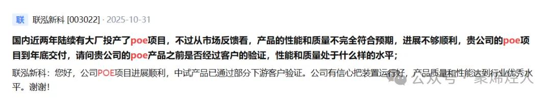 信息披露:投产后较少公开披露POE细节,可能出于技术保密或市场策略考虑