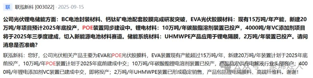最新消息:10月29日,在投资者互动平台答投资者问时表示,公司在国内率先开发出EVA光伏胶膜料,目前同时布局EVA与POE两大主流光伏胶膜料产品,品牌认可度高,处于行业领先地位。年底相关项目投产后,公司EVA产能达35万吨/年,POE产能达10万吨/年。10月31日,在投资者互动平台答投资者问时,表示公司POE项目进展顺利,中试产品已通过部分下游客户验证。公司有信心把装置运行好,产品质量和性能达到行业优秀水平。