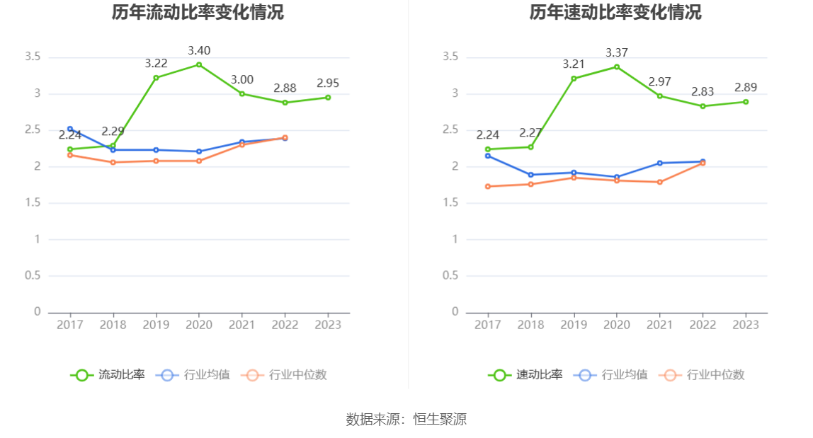 2023年,公司流动比率为2.95,速动比率为2.89。