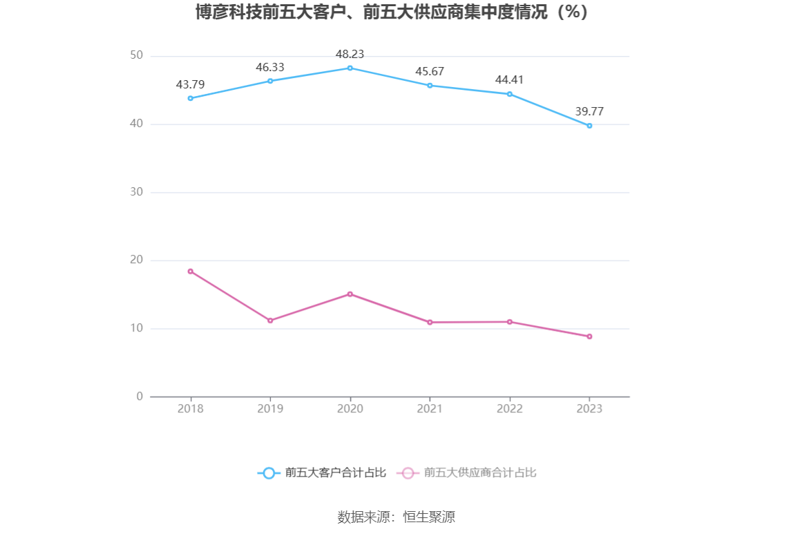 报告期内,公司前五大客户合计销售金额26.25亿元,占总销售金额比例为39.77%,公司前五名供应商合计采购金额0.26亿元,占年度采购总额比例为8.86%。
