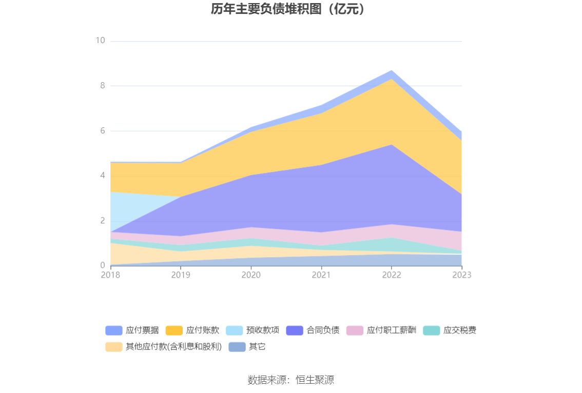 负债重大变化方面,截至2023年年末,公司合同负债较上年末减少53.16%,占公司总资产比重下降5.19个百分点,主要系报告期利君控股完成澳大利亚Sino Iron Pty Ltd项目货物交付, 相应冲减合同负债;应付账款较上年末减少18.59%,占公司总资产比重下降1.19个百分点;应交税费较上年末减少77.62%,占公司总资产比重下降1.39个百分点;应付职工薪酬较上年末增加45.13%,占公司总资产比重上升0.88个百分点。