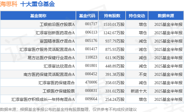 根据2025基金半年报公募基金重仓股数据,重仓该股的公募基金共39家,其中持有数量最多的公募基金为工银瑞信基金的工银前沿医疗股票A。工银前沿医疗股票A目前规模为93.3亿元,最新净值3.23(10月14日),较上一交易日下跌3.15%,近一年上涨15.15%。该公募基金现任基金经理为赵蓓。赵蓓在任的基金产品包括:工银医疗保健股票,管理时间为2014年11月18日至今,期间收益率为191.3%;工银养老产业股票A,管理时间为2015年4月28日至今,期间收益率为62.1%;工银成长精选混合A,管理时间为2021年3月25日至今,期间收益率为-21.3%。