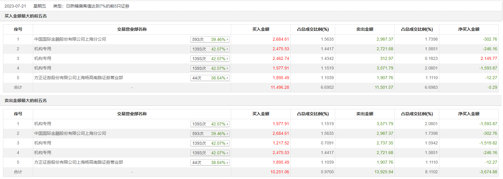 具体来看,机构买入8133.71万元,卖出9343.79万元,合计净卖出1210.08万元。此外,中国国际金融上海分公司、方正证券上海杨高南路证券营业部分别卖出2987.37万元、1907.76万元;中国国际金融上海分公司、方正证券上海杨高南路证券营业部分别买入2684.61万元、1895.49万元。