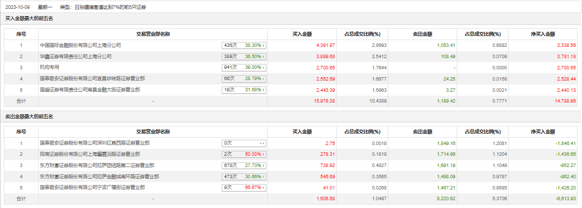 具体来看,机构合计净买入2700.65万元。此外,中国国际金融上海分公司、华鑫证券上海分公司分别买入4391.97万元、3889.68万元;国泰君安证券深圳红荔西路证券营业部、招商证券上海肇嘉浜路证券营业部分别卖出1849.16万元、1714.96万元。