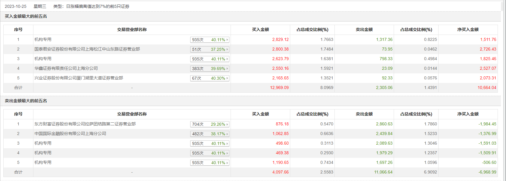 10月25日,万润科技今日涨停,全天换手率达14.2%,振幅达7.88%。龙虎榜数据显示,营业部席位合计净买入3695.05万元。其中,机构买入7611.53万元,卖出7881.86万元,合计净卖出270.33万元。此外,国泰君安证券上海松江中山东路证券营业部、华鑫证券上海分公司分别买入2800.38万元、2550.16万元;东方财富证券拉萨团结路第二证券营业部、中国国际金融上海分公司分别卖出2860.63万元、2439.84万元。
