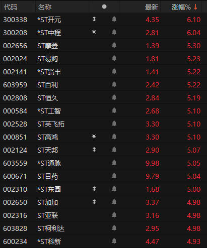 上证报中国证券网讯 10月30日上午交易时段,ST板块继续走强。10时20分,