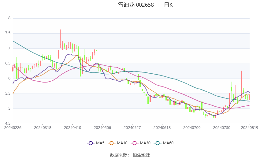 雪迪龙:2024年上半年净利润4937.95万元 同比下降39.88%