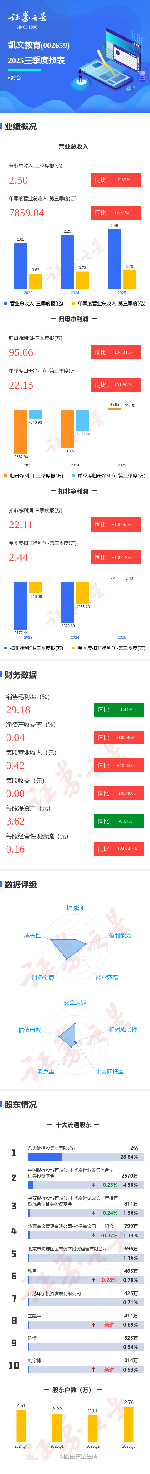 图解凯文教育三季报:第三季度单季净利润同比增长101.80%