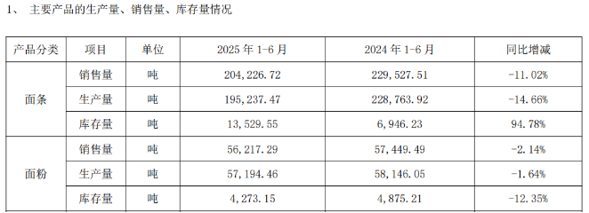 此外,随着消费者的主食选择日益多元化,部分消费者给传统白挂面贴上“精制碳水”的标签,这也对公司产品销量造成一定的冲击。2024年以及今年上半年,克明食品的面条销量分别同比下滑6.73%和11.02%。因此,在市场需求结构性转变的背景下,如何有效遏制销量下滑趋势,已成为克明食品亟待破解的核心难题与经营焦点。