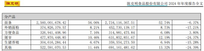 此外,随着消费者的主食选择日益多元化,部分消费者给传统白挂面贴上“精制碳水”的标签,这也对公司产品销量造成一定的冲击。2024年以及今年上半年,克明食品的面条销量分别同比下滑6.73%和11.02%。因此,在市场需求结构性转变的背景下,如何有效遏制销量下滑趋势,已成为克明食品亟待破解的核心难题与经营焦点。