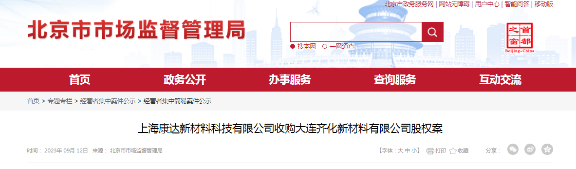 上海康达新材料科技有限公司收购大连齐化新材料有限公司股权案