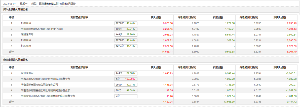 8月7日,国盛金控今日涨停,龙虎榜数据显示,上榜营业部席位全天成交3.27亿元,占当日总成交金额比例为19.87%。其中,买入金额为1.61亿元,卖出金额为1.66亿元,合计净卖出482.42万元。