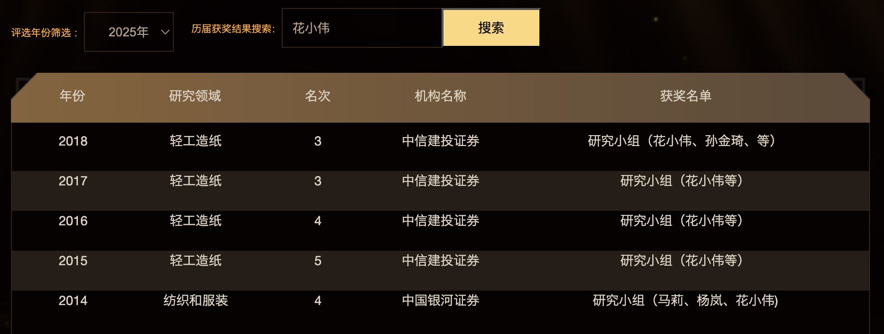 公开履历显示,花小伟具有十余年的券商从业和产业研究经历,曾在银河证券、中信建投、红塔证券、德邦证券等多家券商任职,长期深耕大消费领域,研究覆盖纺织服装、零售、轻工家居、食品饮料等多个细分行业,并于2014年至2018年连续上榜“新财富最佳分析师”榜单。2022年12月,花小伟从德邦证券离职,随后履新上海证券研究所所长,直至此次转会国盛证券。