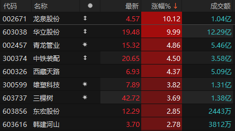 上证报中国证券网讯 10月23日上午交易时段,建筑材料板块异动拉升。截至10时09分,龙泉股份、华立股份涨停。青龙管业、中铁装配、西藏天路涨逾4%,三棵树、东宏股份、韩建河山等跟涨。