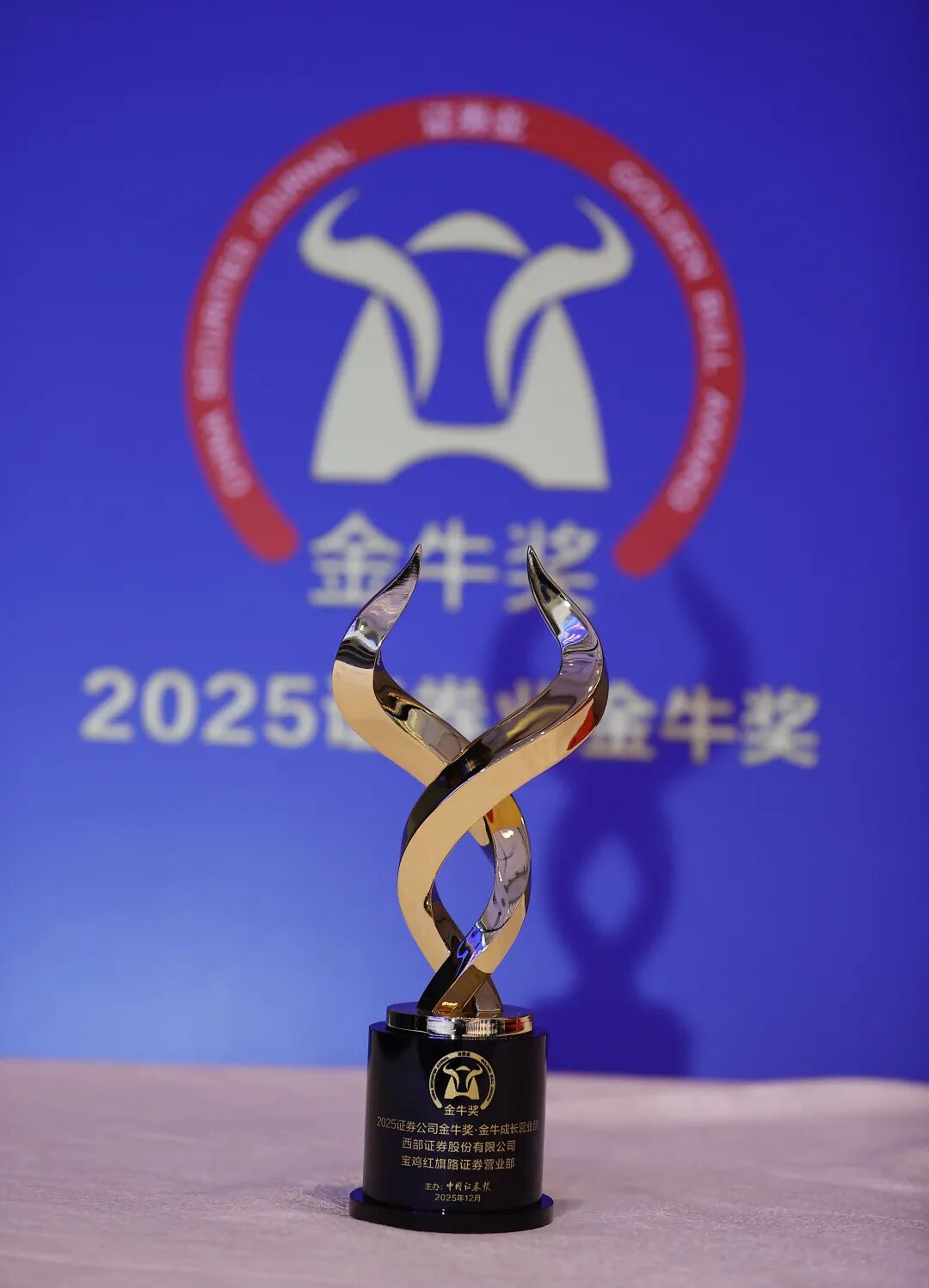 西部证券宝鸡红旗路营业部荣获2025证券公司金牛奖“金牛成长营业部”奖项
