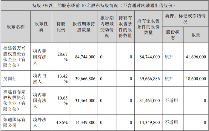 公司于近日接到大股东福建省春宏股权投资合伙企业(有限合伙)(以下简称“春宏投资”)提交的《股份减持计划告知函》,春宏投资持有公司31,464,000股(占公司总股本10.65%),春宏投资计划在公告披露之日起十五个交易日后的三个月内以集中竞价和大宗交易方式减持公司股份累计不超过8,866,500股(占公司总股本的3%),其中以集中竞价方式减持股份总数不超过公司总股本的1%,以大宗交易方式减持股份总数不超过本公司总股本的2%。