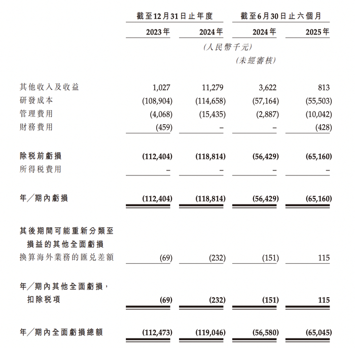 截至最后可行日期,蓝纳成尚未取得任何候选药物的上市批准,亦未从产品销售中产生任何收入。2023年、2024年及2025年上半年,蓝纳成其他收入及收益分别为102.7万元、1127.9万元及81.3万元,期内全面亏损总额分别为1.12亿元、1.19亿元及6504.5万元。