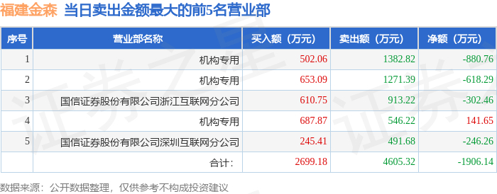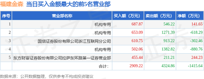 11月6日福建金森(002679)龙虎榜数据:机构净卖出1357.41万元
