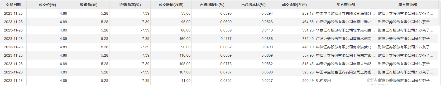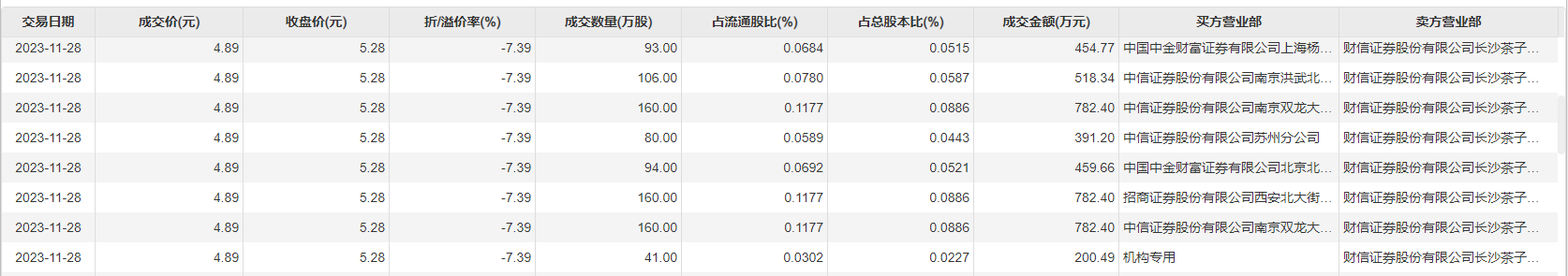 今日大宗交易成交1735万股,成交额8484.15万元,占当日总成交额的27.71%,成交价4.89元,较市场收盘价折价7.39%。