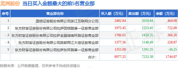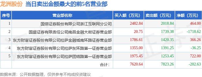 证券之星消息,沪深交易所2025年12月31日公布的交易公开信息显示,龙洲股份(002682)因日跌幅偏离值达到7%的前5只证券登上龙虎榜。此次是近5个交易日内第1次上榜。