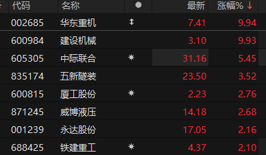 工程机械板块强势上涨 华东重机、建设机械封板涨停