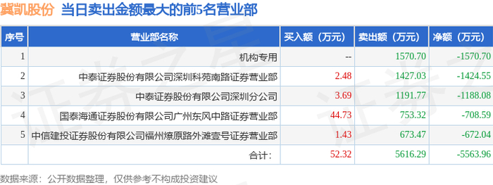 12月30日冀凯股份(002691)龙虎榜数据:机构净卖出770.03万元