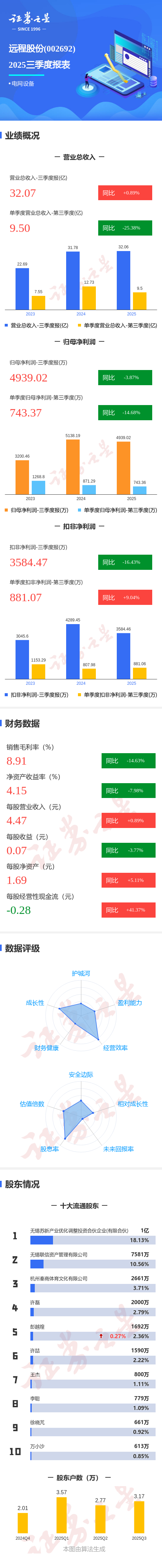 图解远程股份三季报:第三季度单季净利润同比下降14.68%