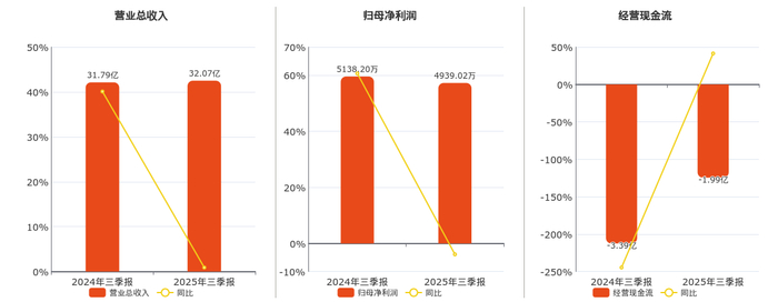 公司营业总收入为32.07亿元,在已披露的同业公司中排名第25,较去年同报告期营业总收入增加2834.75万元,实现5年连续上涨,同比较去年同期上涨0.89%。归母净利润为4939.02万元,在已披露的同业公司中排名第55,较去年同报告期归母净利润减少199.17万元,同比较去年同期下降3.88%。经营活动现金净流入为-1.99亿元,在已披露的同业公司中排名第74,较去年同报告期经营活动现金净流入增加1.40亿元。