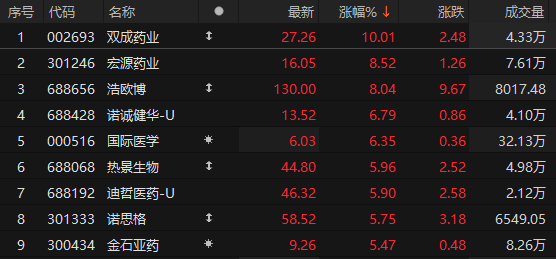 上证报中国证券网讯 11月20日上午交易时段,医药生物板块表现强势,截至9时56分,