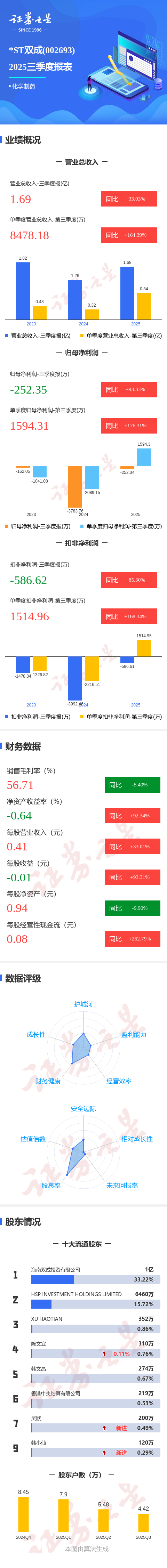 图解*ST双成三季报:第三季度单季净利润同比增长176.31%