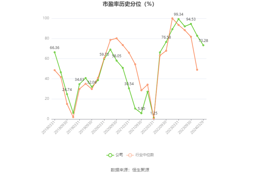 市盈率为负时,不显示当期分位数,会导致折线图中断。