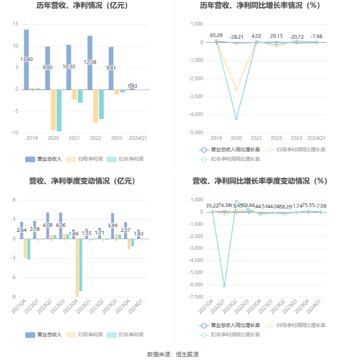 数据显示,2024年第一季度公司加权平均净资产收益率为-0.63%,较上年同期增长0.01个百分点;公司2024年第一季度投入资本回报率为-0.04%,较上年同期增长1.53个百分点。