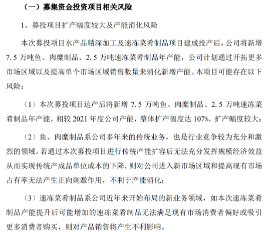 证券之星了解到,根据规划,水产品项目达产后将新增7.5万吨鱼、肉糜制品、2.5万吨速冻菜肴制品年产能,公司产能将进一步扩充。然而,作为公司核心业务的冻鱼肉制品及肉制品业务,近年销售持续萎缩,收入疲软,至今年上半年,该业务收入同比大幅下降18.49%。同时,被视为第二增长曲线的速冻菜肴制品,未能挑起业绩大梁,上半年收入同比下滑23.17%。在行业竞争加剧背景下,若市场拓展不及预期,新增产能可能会进一步拖累公司整体盈利能力。