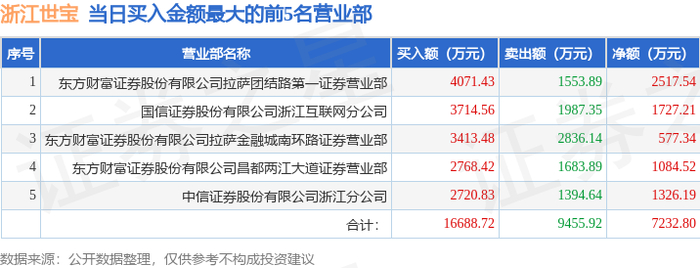 12月30日浙江世宝(002703)龙虎榜数据:机构净卖出6154.37万元,北向资金净卖出6134.79万元