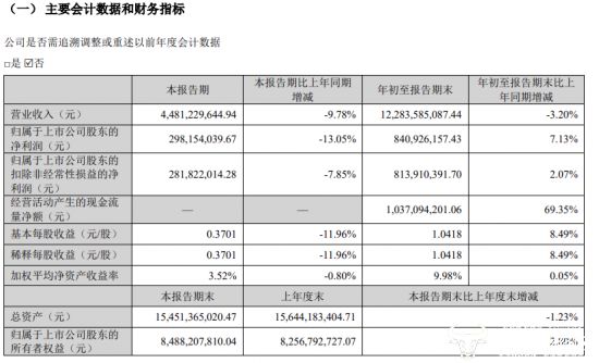 此外,同期归母净利润约为8.41亿元,同比上升7.13%。由此来看,其在第三季度利润下滑的影响并不大。