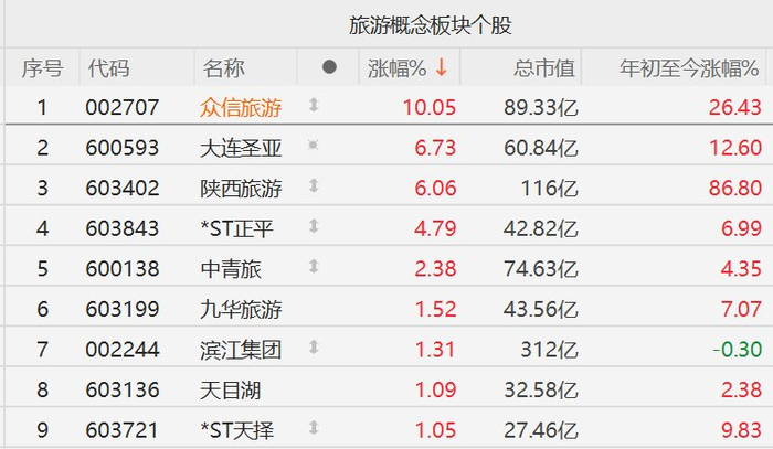 A股部分旅游股逆势走强,众信旅游涨停